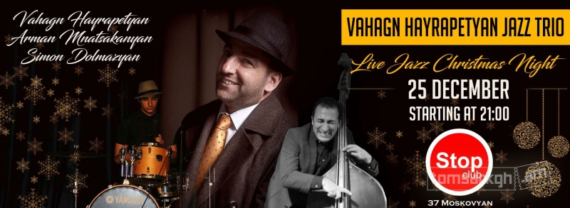 Ջազային հեքիաթային գիշեր Վահագն Հայրապետյան Ջազ Եռյակի մասնակցությամբ։ Տոմսերի արժեքը՝ 2000/ 3000 դրամ: