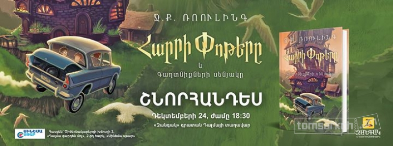 Սիրով սպասում ենք ձեզ դեկտեմբերի 24-ին՝ ժամը18.30-ին, Ջ.Ք. Ռոուլինգի «Հարրի Փոթերը և Գաղտնիքների սենյակը» գրքի շնորհանդեսին: