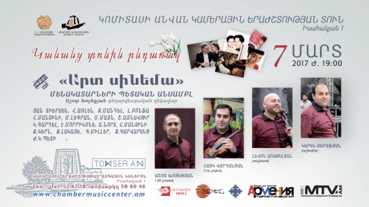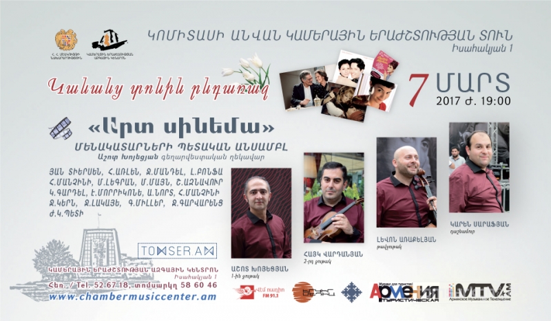 Սիրով տեղեկացնում ենք, որ մարտի 7-ին ժամը 19:00-ին տեղի կունենա Արտ Սինեմա անսամբլի համերգը Կոմիտասի անվան կամերային երաժշտության տանը:
