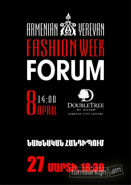 2017 թվականի Ապրիլի 8-ին ժամը 14:00 DoubleTree by Hilton Yerevan-ում տեղի կունենա «FASHION WEEK Forum» համաժողովը, որտեղ նորաձևության ոլորտի բոլոր անհատներն ու կազմակերպությունները հնարավորություն կունենան հանդիպելու և համագործակցության եզրեր գտնելու միմյանց հետ, ինչպես նաև ներկայանալու իրենց պրեզենտացիաներով և հստակ ու իրատեսական առաջարկներով՝ ինչպես զարգացնել նորաձևության ոլորտը Հայաստանում: Մուտքն ազատ է (ԱՆՎՃԱՐ):