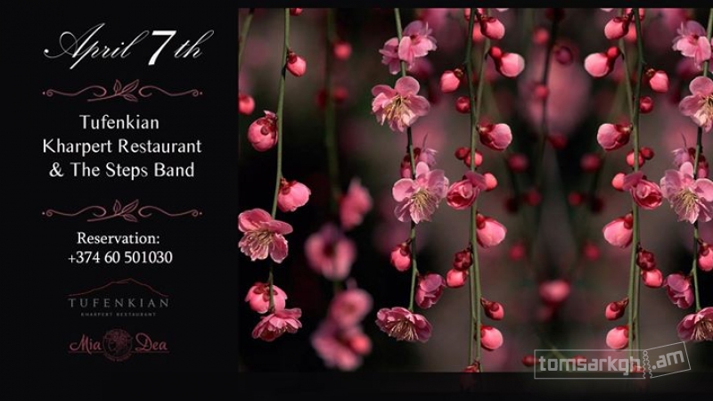 Ապրիլի 7-ին ժամը 19:00-ին Թուֆենկյան Խարբերդ ռեստորանը հրավիրում է միասին տոնել գարնան ամենագեղեցիկ օրը՝ Մայրության և Գեղեցկության տոնը: Երեկոն իր կենդանի կատարումներով կզարդարի The Steps բենդը: