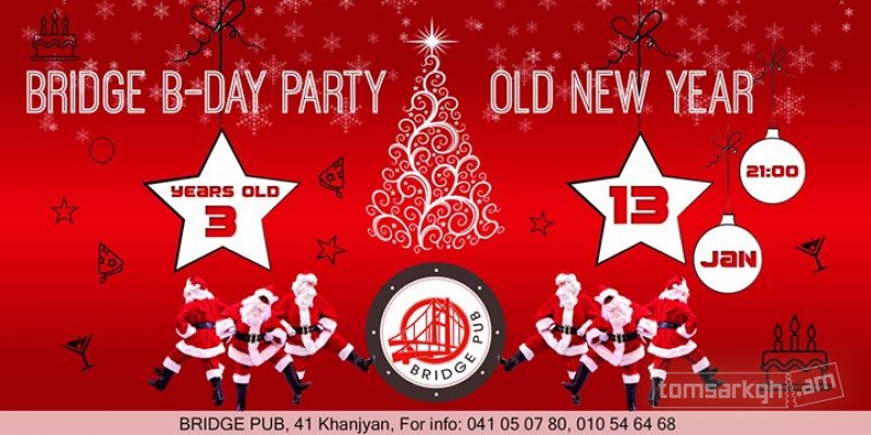 Երկուսը մեկում՝ հունվարի 13-ին, շաբաթ օրը, միքսում ենք և նշում ենք մեր Bridge-ի տարեդարձը՝ մենք 3 տարեկան ենք, և Հին Նոր Տարին։ Բոլոր ընկերների ներկայությունը պարտադիր է՝ անակնկալների երեկո է սպասվում։