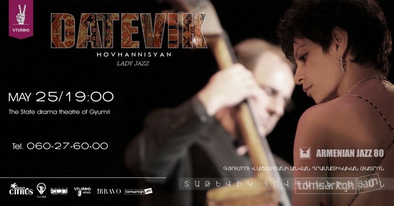 Մայիսի 25-ին, ժամը 19։00-ին մեկ բացառիկ համերգով Գյումրիում կլինի հայկական ջազի կենդանի լեգենդ, ջազի թագուհի Տաթեւիկ Հովհաննիսյանը ․․․