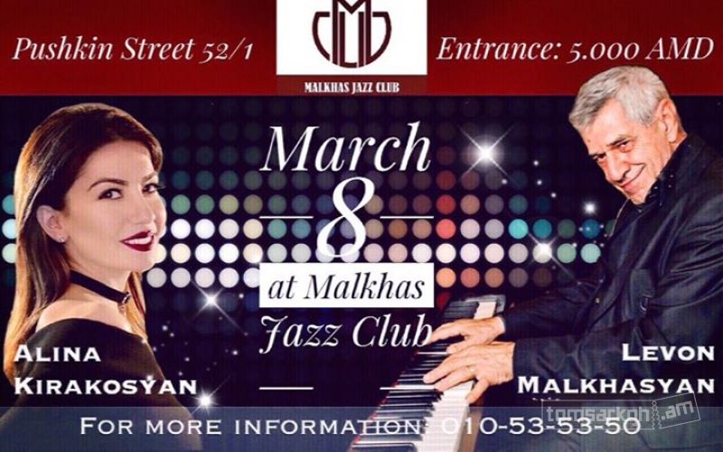Для Вас споёт Алина Киракосян, а далее выступит «Malkhas Jazz Band» во главе с легендарным джазменом Левоном Малхасяном !