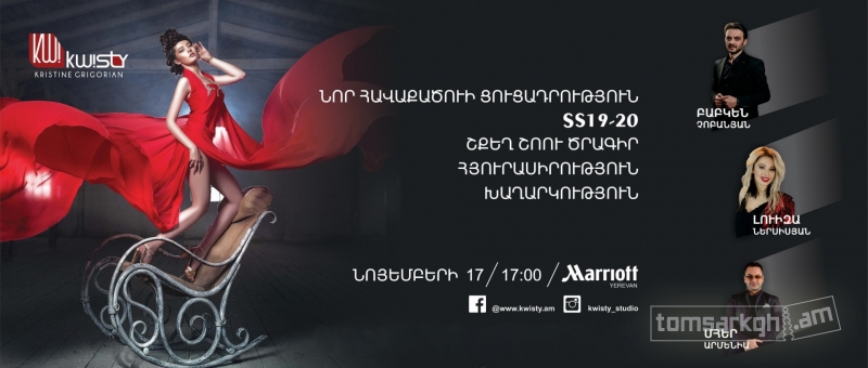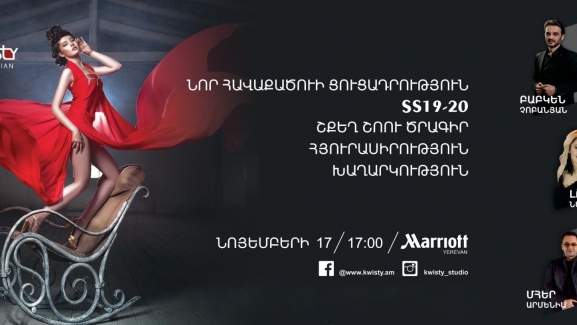 Kwisty Fashion Studio-ն նոյեմբերի 17-ին, ժամը 17.00-ին, Արմենիա Մարիոթ հյուրանոցի Տիգրան Մեծ սրահում կազմակերպում է նորաձևության շքեղ և անակնկալներով լի փակ երեկո։