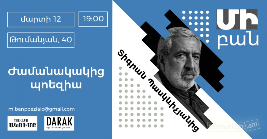Միջոցառումը տեղի կունենա մարտի 12-ին, ժամը 19:00-ին The Club-ում (Թումանյան 40):
