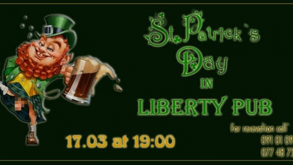 Իռլանդական երեկո Liberty pub-ում: Սուրբ Պատրիկի տոնը նշեք մեզ հետ: Իռլանդական ուրախ պարային երաժշտություն, կանաչ գարեջուր և իհարկե Իռլանդական հայտնի կոկտեյլ Dirty Leprechaun-ը: Ցանկալի է կանաչ հագուստը: