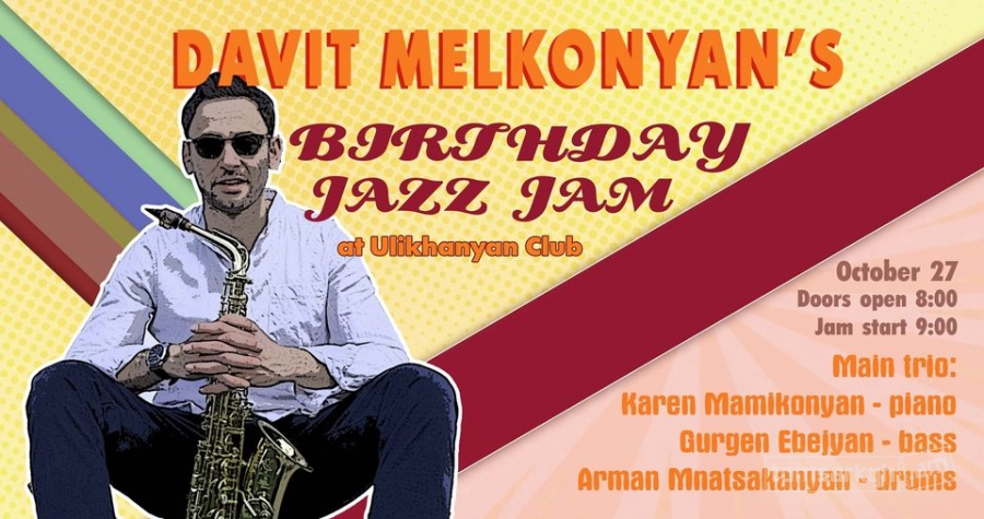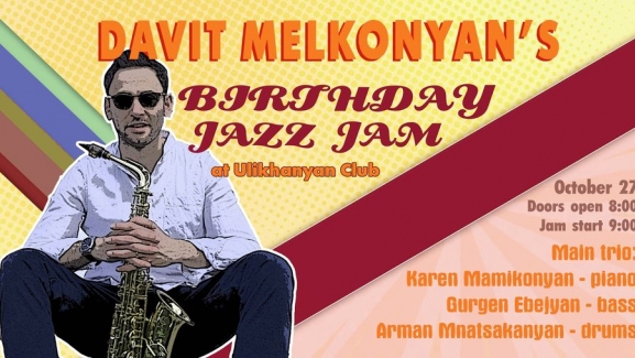 Հոկտեմբերի 27-ին, Դավիթ Մելքոնյանի ծննդյան 30 ամյակին, ժամը 20:30, Ուլիխանյան ջազ ակումբում տեղի է ունենալու Davit Melkonyan’s Birthday Jazz Jam: Կլինի երաժիշտներից բաղկացած հիմնական կազմ, որին կարող են միանալ բոլոր երաժիշտները, ովքեր ցանկություն ունեն ստեղծել երաժշտական դիալոգներ և ջազային խորհրդավոր մթնոլորտ, ևս մեկ անգամ համագործակցեն Դավիթ Մելքոնյանի հետ: