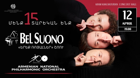 В 2026 году легендарное шоу трёх роялей Bel Suono отмечает своё 15-летие грандиозным юбилейным туром. Одним из ключевых событий тура станет концерт 12 апреля, в котором выступят Bel Suono и Национальный филармонический оркестр Армении.