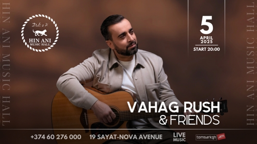 Ապրիլի 5-ին Վահագ Ռաշը և ընկերները կներկայացնեն երգեր՝ սիրո, հուշերի ու երազանքների մասին։ Երեկոն կլցվի ձեր սիրելի ստեղծագործություններով և նոր երգերով։
