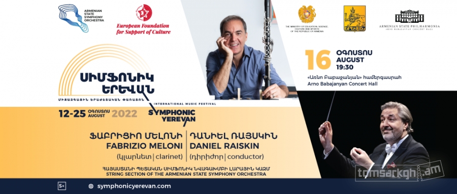 Օգոստոսի 16-ին` 19:30-ին «Առնո Բաբաջանյան» համերգասրահում տեղի կունենա «Սիմֆոնիկ Երևան» միջազգային երաժշտական փառատոնի 5-րդ համերգը: