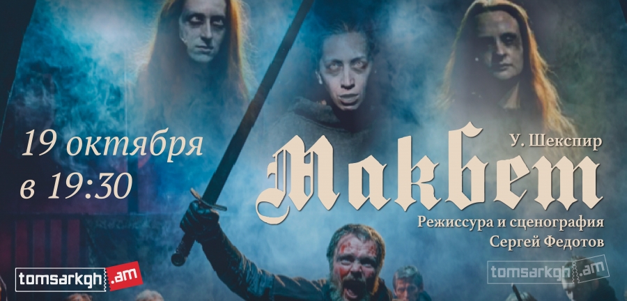 «Макбет».(19-ого октября) Режиссура и сценография Сергея Федотова,художественного руководителя театра, лауреата Национальной премии «Золотая Маска» ,обладателя многочисленныз премий и званий.