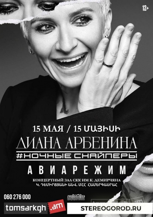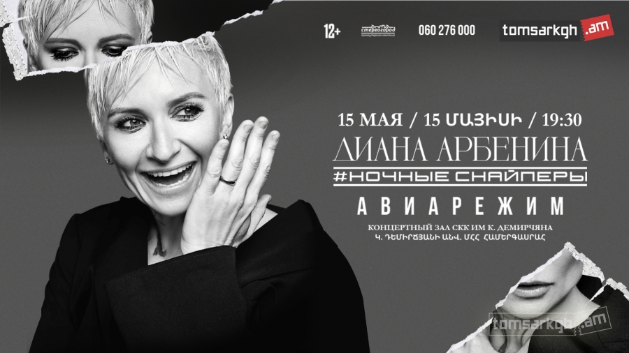 15 мая 2023 года Диана Арбенина, группа «Ночные Снайперы» приезжают в Ереван, чтобы представить поклонникам новое шоу «Авиарежим» на сцене малого зала СКК Демирчана!