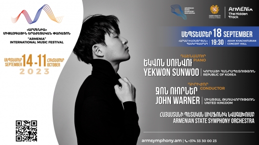 The next concert of the "Armenia" International Music Festival will take place in the "Aram Khachaturian" concert hall, on September 18, at 19:30.