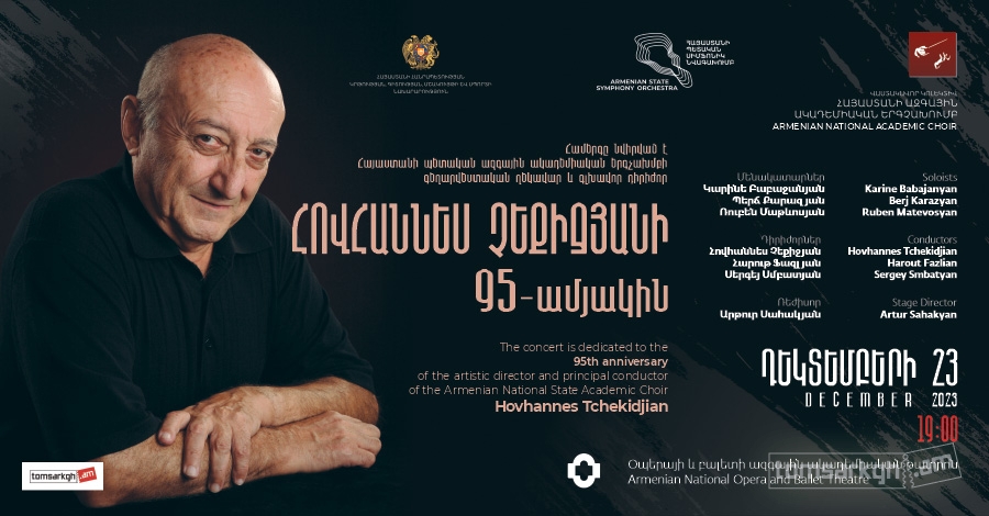 Դեկտեմբերի 23-ին ժամը 19։00 Հայաստանի Օպերայի և Բալետի ազգային թատրոնում տեղի կունենա Ազգային հերոս, Հայաստանի պետական ազգային ակադեմիական երգչախմբի գեղարվեստական ղեկավար Հովհաննես Չեքիջյանի 95-ամյակին նվիրված հոբելյանական երեկոն Հայաստանի պետական ազգային ակադեմիական երգչախմբի, Հայաստանի պետական սիմֆոնիկ նվագախմբի և անվանի մենակատարների և դիրիժորների մասնակցությանբ։