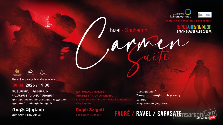 April 30 at 7:30 PM at the Aram Khachaturian Concert Hall.