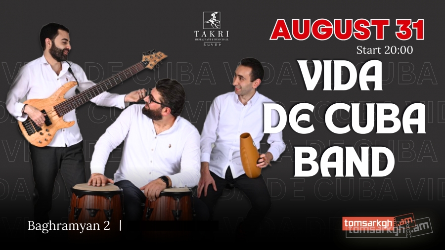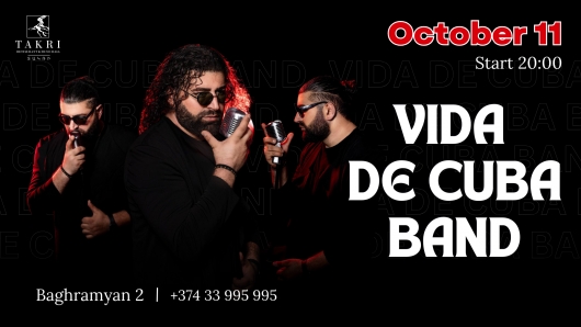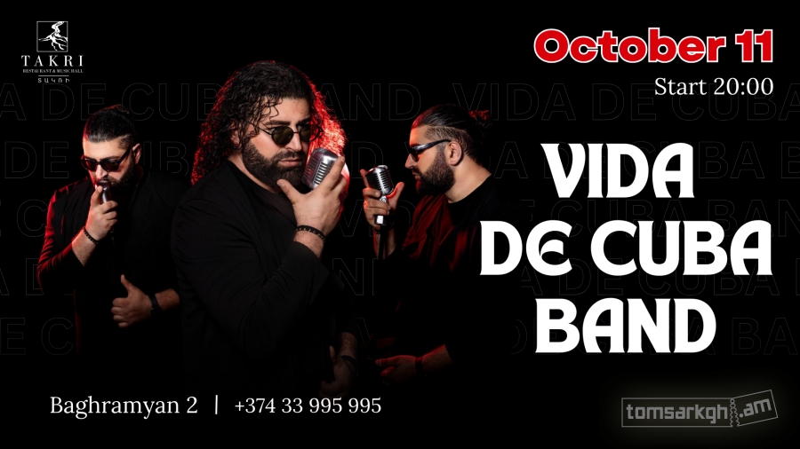 Կուբայական և լատինաամերիկյան ռիթմերի հրավառություն` ամենասիրված և ճանաչված համաշխարային հիթերը և <<Vida de Cuba>>-ի հեղինակային գործերը, այս երեկո, Ձեզ համար... Երաժշտություն, որի ներքո, պարզապես, հնարավոր չէ պարահրապարակում չհայտնվելը։