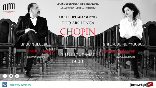 Արամ Թալալյան /թավջութակ/, ՀՀ վաստակավոր արտիստ՝ Ջուլիետա Վարդանյան /դաշնամուր/; Կհնչեն Շոպենի ստեղծագործությունները գրված թավջութակի և դաշնամուրի համար, ինչպես նաև մշակումներ: