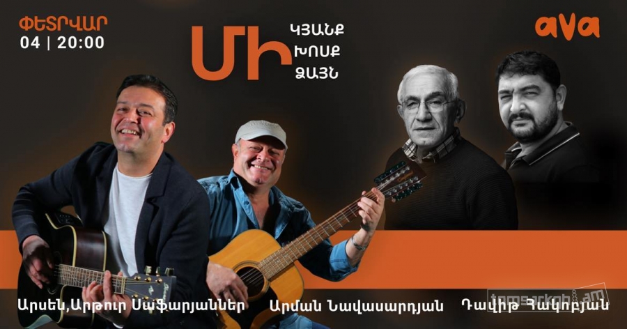On February 4, at AVA, you will find a memorable evening with the participation of Honored Artist of the Republic of Armenia Davit Hakobyan, Arman Navasardyan, Arsen and Artur Safaryans.