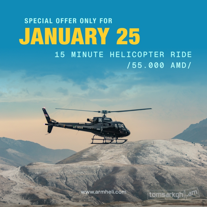 On May 17, Armenian Helicopters Company, within the framework of “Museum night”, in cooperation with the Wine History Museum of Armenia, will conduct “open-air museum” themed flights from the Wine History Museum of Armenia over the Kasakh Gorge to explore the natural and historical landscape of the region.