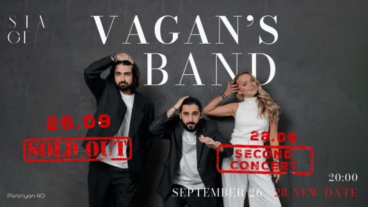Սեպտեմբերի 26, 28-ին, The Stage-ում վայելեք Vagan’s Band-ի կատարմամբ բոլորի կողմից սիրված հիթերը, որոնք նոր շնչով եւ անկրկնելի էներգիայով կլցնեն ձեր երեկոն։