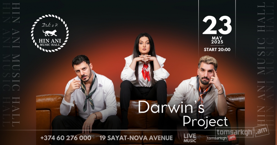 Հին Անի Մյուզիք Հոլլում խելահեղ ռիթմերով կկիսվի Darwin’s Project-ը, ունենալու ենք գժական ու թու՜յն երեկո, հիշելու ենք շա՜տ սիրված երգեր ու դրանք լսելու նոր շնչով ու նոր մոտեցմամբ