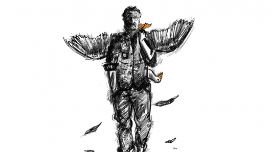 Ռաֆայելը մոտենում է իր տանը։ Մուտքի մոտ սագ է նկատում։ Գյուղում ոչ ոք սագ չի պահում։ Երբ նա բացում է տան դուռը, սագը սողոսկում է ներս։ Առանց հանելու ցեխոտ կոշիկները Ռաֆայելը սագի հետևից մտնում է տուն և բռնում նրան։ Սենյակի մեջտեղում նկատում է, որ չի հանել կոշիկները։ Կռանում, հանում է կոշիկները և առանց մաքրելու իր թողած հետքերը դուրս է գալիս տնից ու բարձրանում սար։