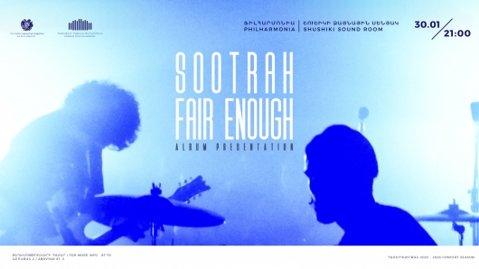 The first Armenian post-rock/stoner duo Sootrah is going to present their second studio album, “Fair Enough” - a record full of guitar ambience, heavy tones and heart-touching melodies. Get ready to become a part of a performance and feel every sound.
