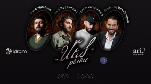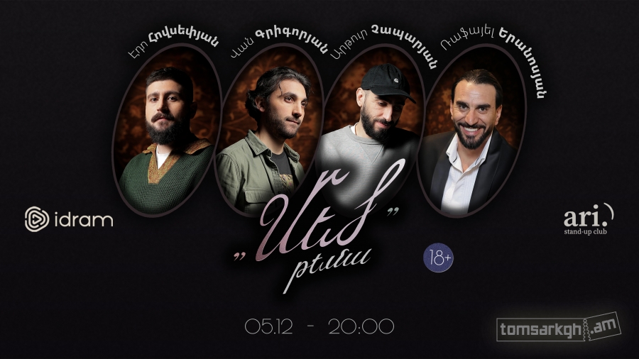 Կոմիկները բեմում կիսվում են իրենց հուզող թեմաներով։ Բեմում՝ Արթուր Չապարյան, Վան Գրիգորյան, Էդո Հովսեփյան: Հյուրը`Ռաֆայել Երանոսյան :
