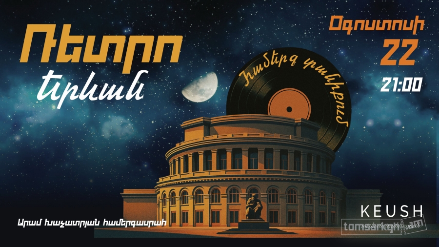 Միացե՛ք մեզ եզակի երաժշտական երեկոյի՝ բաց երկնքի տակ, որտեղ հնչելու են սիրված երևանյան ռետրո երգերը՝ Մաշա Մնջոյանի, Վարդան Բադալյանի և Արփիի կատարմամբ։