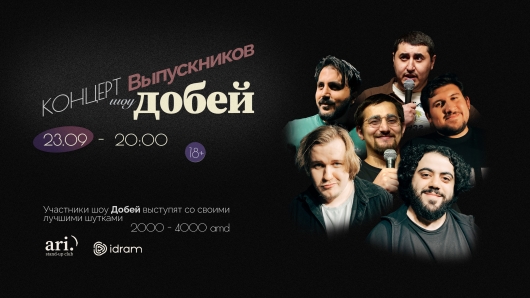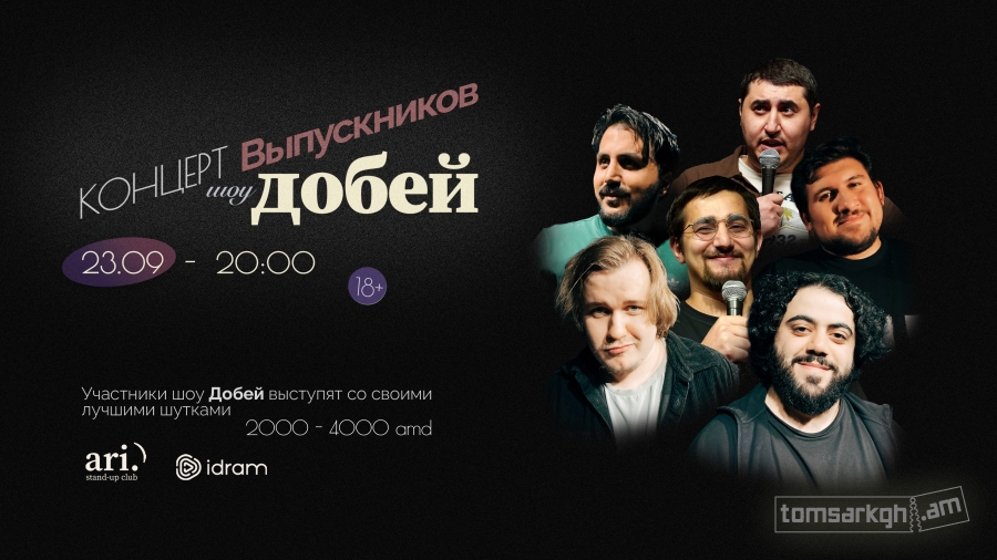 Участники шоу "Добей"- Жнепр, Паша Тюлькин, Тигран Джзмачян, Экнадос Африкян, Вага Надар, Гор Гарьянц выступят со своими лучшими шутками.