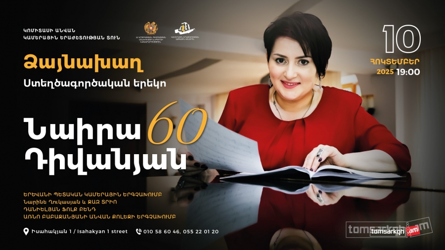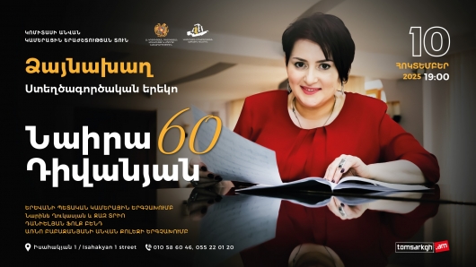 հրավիրում է կոմպոզիտոր, հեռուստատեսային և ռադիո երաժշտական նախագծերի հեղինակ, Հայաստանի կոմպոզիտորների միության անդամ Նաիրա Դիվանյանյանի 60-ամյա հոբելյանին նվիրված ստեղծագործական երեկոյին: «Ձայնախաղ» խորագրով երեկոյի ընթացքում կհնչեն հեղինակի տարբեր տարիներին, տարբեր ժանրերում գրած ստեղծագործություններ: