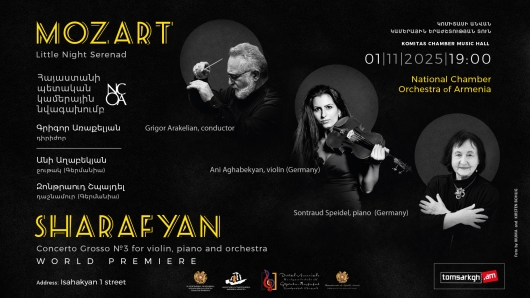 On November 1 at 19:00, at the Komitas Chamber Music Hall, the National Chamber Orchestra of Armenia will present the world premiere of Concerto