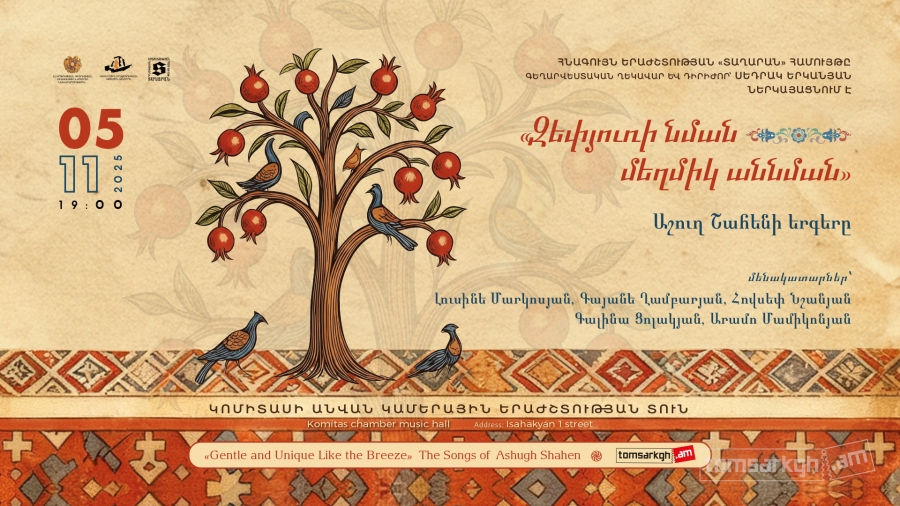 On November 5, at 19:00, the Komitas Chamber Music Hall will host a concert by