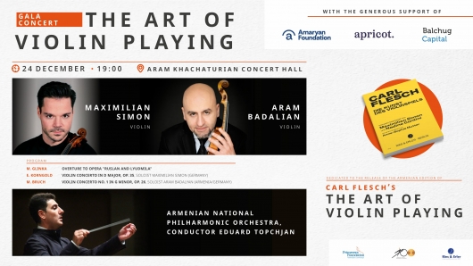 To celebrate its presentation, a concert “The Art of Violin Playing” will showcase the mastery of Armenian and international performers – Maximilian Simon and Aram Badalyan, with the Armenian National Philharmonic Orchestra under the baton of Maestro Eduard Topchjan.