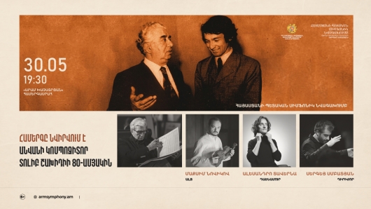 Մայիսի 30-ին համեցե՛ք «Արամ Խաչատրյան» համերգասրահ հատուկ երեկոյի՝ նվիրված Արամ Խաչատրյանի անվանի սան, կոմպոզիտոր Տոլիբ