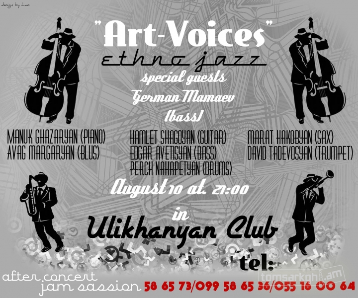 Հատուկ համերգ "Art- voices" էթնո ջազ խմբի հետ: Համերգից հետո սպասվում է "Jam sassion",իսկ հատուկ հյուրը կլինի Ջերման Մամաեվը: