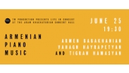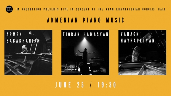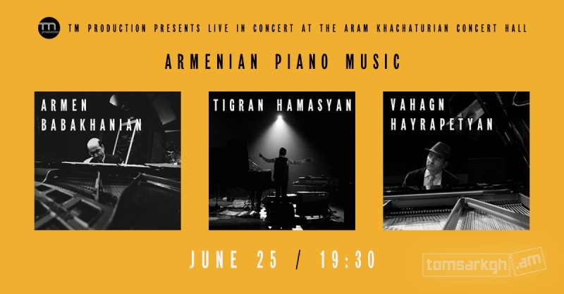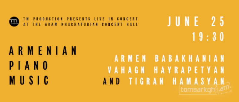 Սիրով հրավիրում ենք Արամ Խաչատրյան համերգասրահ ներկա գտնվելու Արմեն Բաբախանյանի, Տիգրան Համասյանի և Վահագն Հայրապետյանի մասնակցւթյամբ համերգին։
