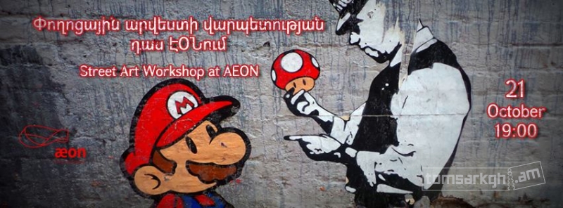 Հոկտեմբերի 21-ին` ժամը 19:00-ին, ԷՕՆում կկայանա փողոցային արվեստի ինտերակտիվ վարպետության դաս, որի ընթացքում մասնակիցները կծանոթանան արվեստի այդ ուղղության հմտություններին և կստեղծեն սթրիթ-արտի իրենց յուրօրինակ նմուշը: