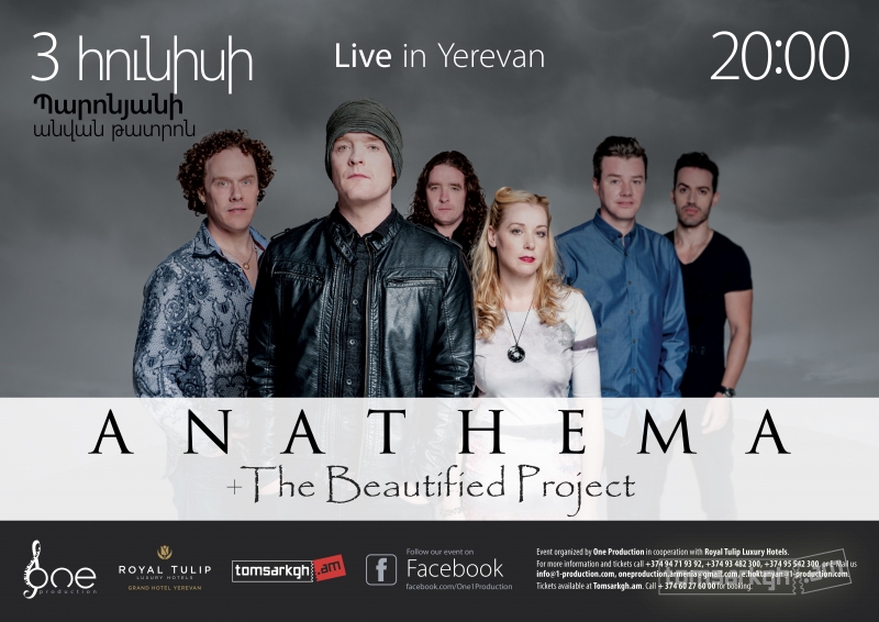One Production ընկերությունը, համագործակցելով Northern Music Co.- ի հետ, հպարտությամբ ներկայացնում է Anathema աշխարհահռչակ խմբի երկար սպասված առաջին համերգը Հայաստանում: