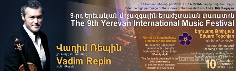Ուրախ ենք ներկայացնել Երևանյան 9-րդ երաժշտական փառատոնի բացման համերգը՝ մեծահռչակ ջութակահար Վադիմ Ռեպինի մենակատարությամբ: