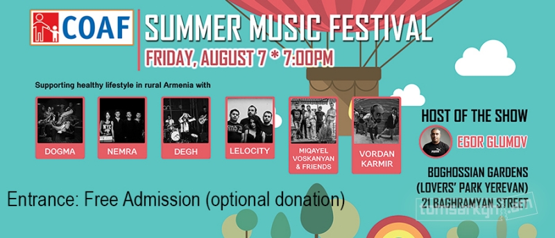 Միացեք մեզ Հայաստանի մանուկներ հիմնադրամի ամառային երաժշտական փառատոնին, որը տեղի կունենա օգոստոսի 7-ին` ժամը 19:00-ին, Սիրահարների այգում: