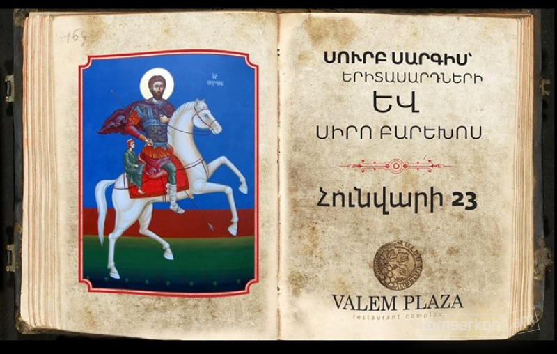 Համեցեք Valem Plaza հունվարի 23-ին` նշելու սրբ. Սարգսի տոնը: