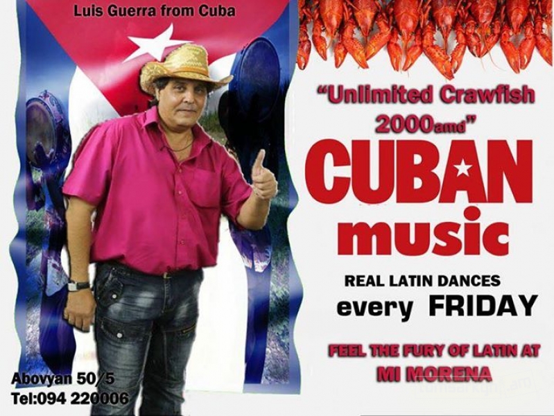 Այս ուրբաթ Կուբայից ժամանած երգիչ Լուիս Գուերրան Մի Մորենայում: Երերկոյի ընթացքում կմատուցվի գարեջրի մեջ պատրաստված խեցգետին անսահմանափակ քանակությամբ: