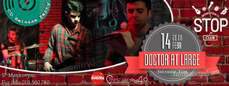 Ուրախ ենք հրավիրելու բոլորին Doctor At Large խմբի առաջին համերգին Ստոպ ակումբում` նվիրված "Boring Town" սկավառակի թողարկմանը: Սպասվում է երեկո Punk, Rock, Indie, Alternative ժանրային ոճի երաժշտության ներքո: