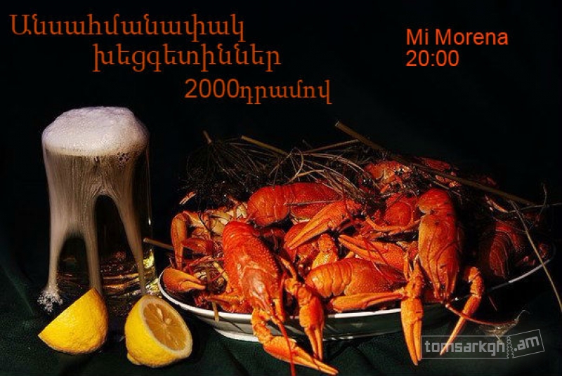 Գարեջրի մեջ եփված անսահամանափակ խեցգետիններ Մի Մորենայում ընդամենը 2000 դրամով: