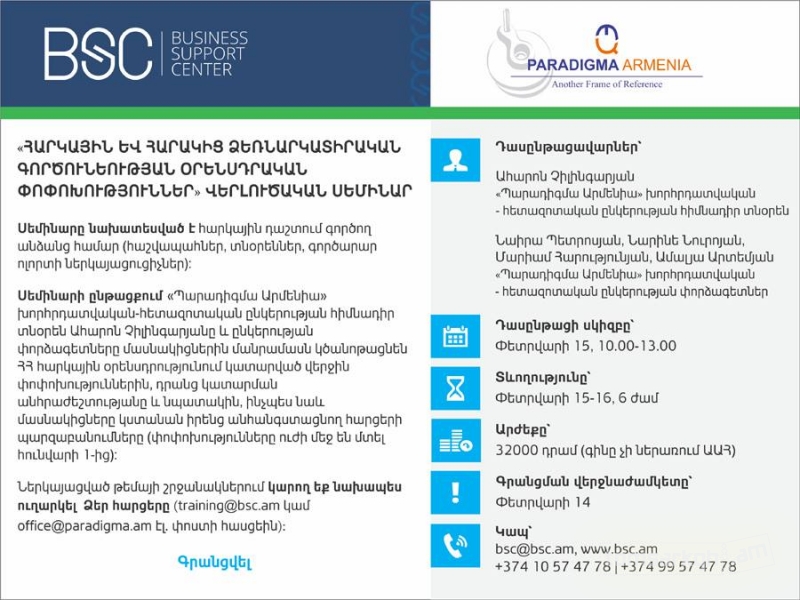 «Հարկային և հարակից ձեռնարկատիրական գործունեության օրենսդրական փոփոխություններ» վերլուծական սեմինար