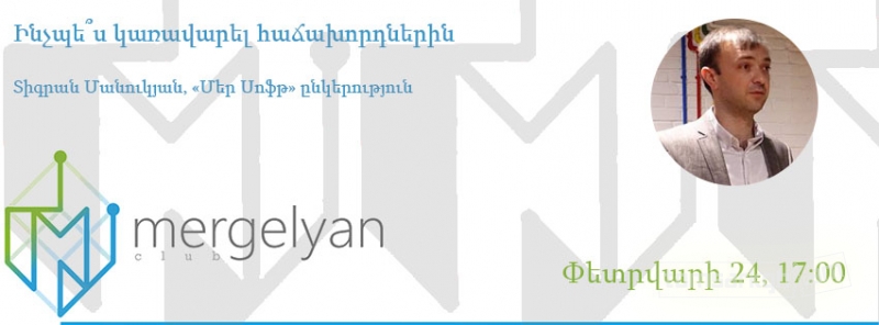 Փետրվարի 24-ին Մերգելյան ակումբը կհյուրընկալի «Մեր Սոֆթ» ընկերության համահիմնադիր Տիգրան Մանուկյանին, ով կխոսի CRM համակարգերի գաղափարի և կիրառության մասին: Կներկայացնի «Մեր Սոֆթ»-ի CRM համակարգը և թե ինչ տեխնոլոգիական լուծումներ են առաջարկում իրենք։