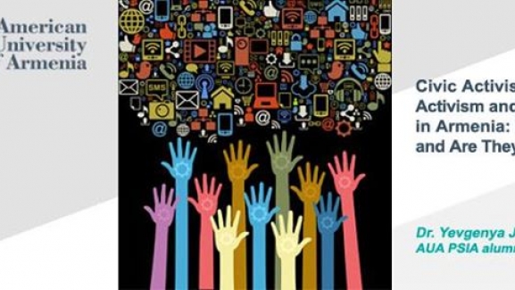 Civic activism in Armenia is becoming more and more visible, but does it signal a change in political culture from passive and distrustful to more participatory? More and more people “get online,” but is internet a good tool for mobilizing potential activists? The talk will explore these questions through public opinion survey data, drawing on four data sets from 1997 to 2013. It will examine social and political participation (both actual and potential) among the Armenian population, and use of social media by various groups. The analysis presented is part of a larger ongoing research project on civic activism in Armenia.
