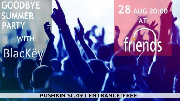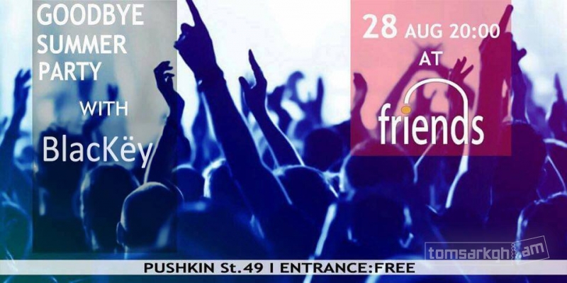 Goodbye Summer Party-ի ենք հրավիրում բոլոր մեր այն Friend-ներին ,ովքեր ուզում են իրենց լավ անցկացված ամառը եզրափակեն երաժշտությամբ,տրամադրությամբ և ոչ պակաս խմիչքների տեսականիով։ Երաժշտությունը երեկոի ընդհացքում կապահովի BlacKëy-ը։
